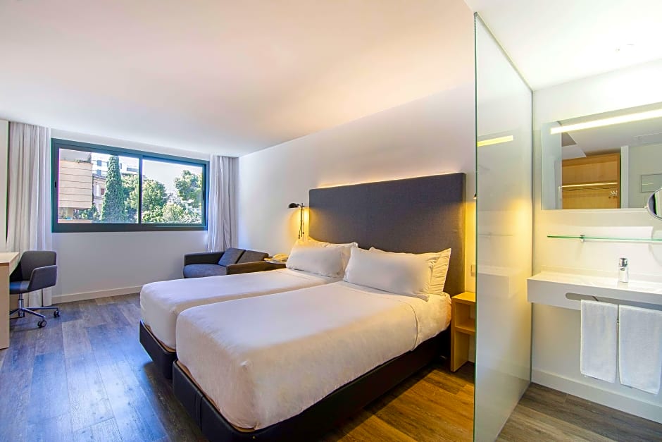 This functional room comes with a large flat-screen TV with satellite channels, free laptop safe, free mini-bar with soft drinks, free WiFi, desk and a multi-plug charger for mobile devices. The private bathroom with bath or shower (both with rain shower) includes a vanity mirror, a hairdryer and INNSiDE toiletries.